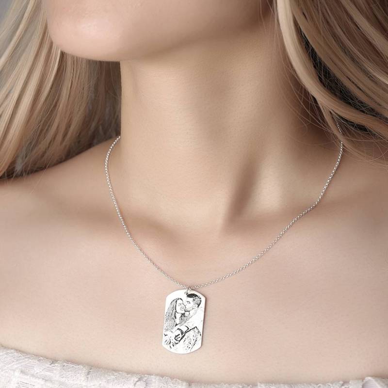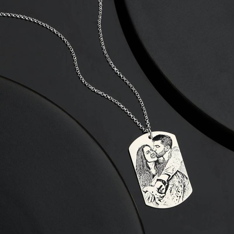 Women's Women's Photo Engraved Tag Necklace With Engraving Silver
