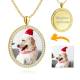 Women's Engraved Personalized Rhinestone Crystal Shield Shape Photo Necklace 14K Gold Plated Golden - Colorful