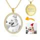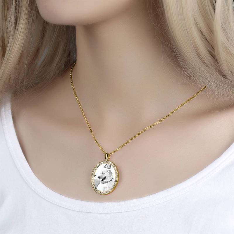 Women's Engraved Personalized Rhinestone Crystal Shield Shape Photo Necklace 14K Gold Plated Golden - Sketch