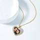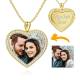 Women's Personalized Rhinestone Crystal Heart Shape Photo Engraved Necklace 14K Gold Plated Golden - Colorful