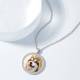 Women's Personalized Rhinestone Crystal Round Shape Photo Engraved Necklace Platinum Plated Silver - Colorful