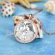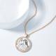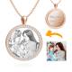 Women's Personalized Rhinestone Crystal Round Shape Photo Engraved Necklace Rose Gold Plated - Sketch
