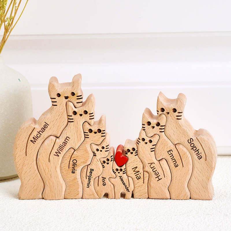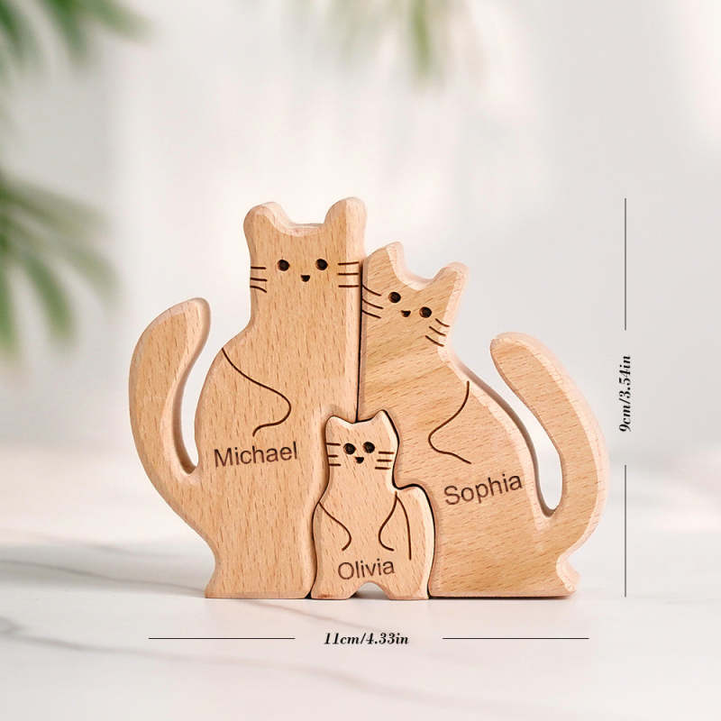 Wooden Cats Family Custom Names Puzzle Home Decor Gifts